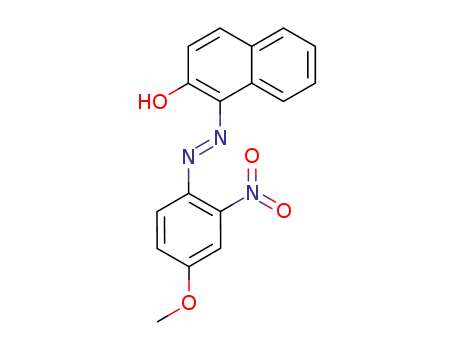 The chemical formula of?1-[(4-methoxy-2-nitrophenyl)azo]-2-naphthol is C17H13 N3 O4 which containing 17 Carbon atoms,13 Hydrogen atoms,3 Nitrogen atoms and 4 Oxygen atoms,and the molecular weight, and the molecular weight of 1-[(4-methoxy-2-nitrophenyl)azo]-2-naphthol is 323.308